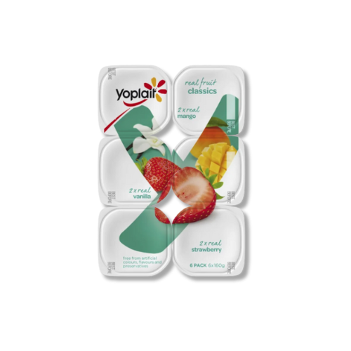 Yoplait Mixed Fruits 6-Pack combines the luscious creaminess of Yoplait yoghurt with the vibrant flavors of a variety of fruits.